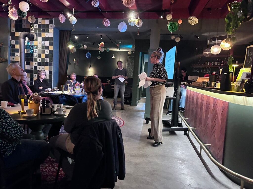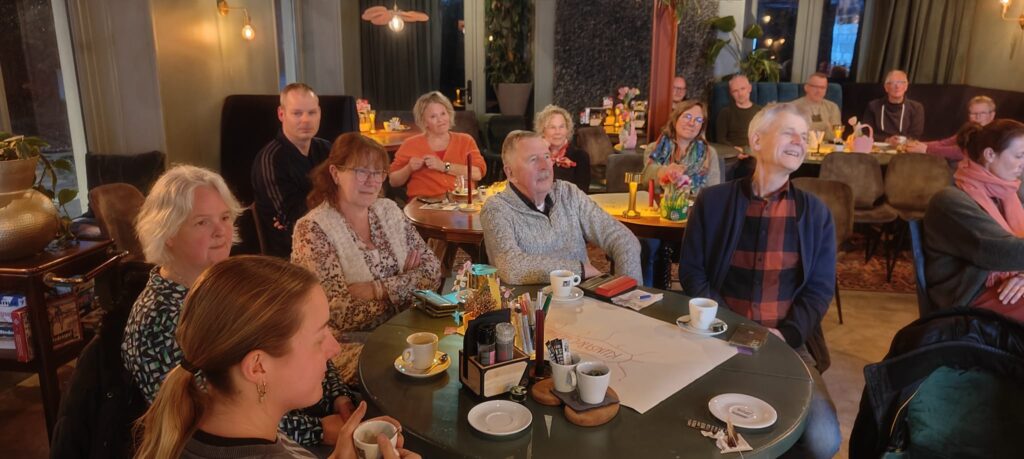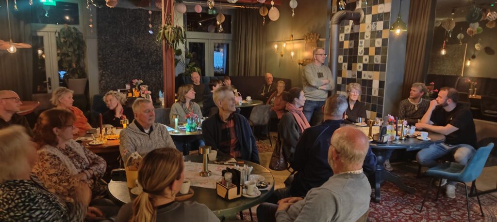 De avond werd in- en uitgeleid door spreekstalmeester Ate de Boer, Lukas Offinga blikte kort terug op vorig jaar, Berber Sieperda zette met haar inspriratievoorbeelden de zaaisessie in gang, Lieuwe Hoekstra hield de gang er in en vatte samen en Janna van der Schaar gaf aan hoe het nu verder zal gaan. Rixt Walda van de kerngroep was nog afwezig. De kerngroep gaat de ingevulde sheets en ideeënformulieren verwerken en diverse groepjes gaan de activiteiten verder uitwerken en organiseren.