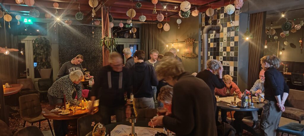 In het Reade Hynder was woensdagavond 25-03 een prachtig begin van Wommels Bloeit 2026. Een café vol ideeënrijke mensen bedachten allerlei leuke dingen op de zaaiavond, een avond waarop de zaadjes werden gezaaid die eind augustus tot bloei moeten komen. Grote vellen werden vol geschreven met diverse leuke activiteiten voor tijdens de bloeiweek 2026 (24-31 aug). Vervolgens werden er kleine rode stickertjes geplakt bij wat men het leukst vond om te laten gebeuren.